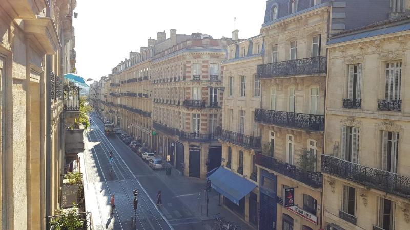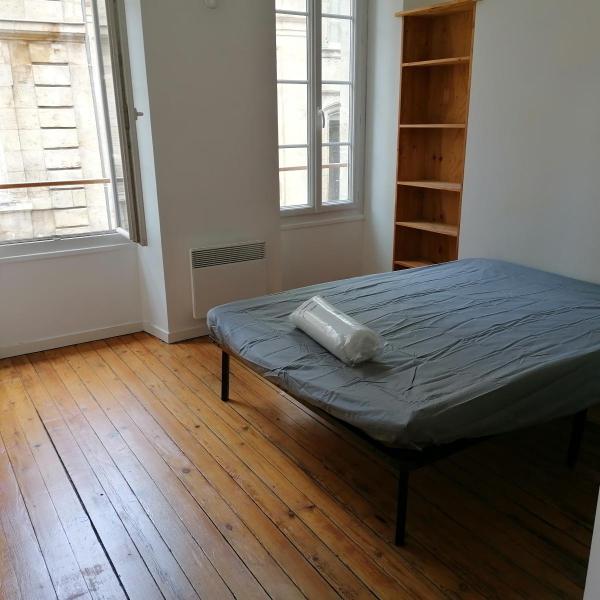 En plein centre de Bordeaux, à deux pas de la place Pey Berland, loue T2 meublé de 48m² au 2e étage d'un petit immeuble pierre. Il est composé d'un séjour avec coin cuisine équipée (plaques, frigo top, micro-ondes, vaisselle), d'une chambre, d'une salle de bains et d'un wc séparé. Bien situé proche de toutes les commodités (trams, commerces...). EDF en +.